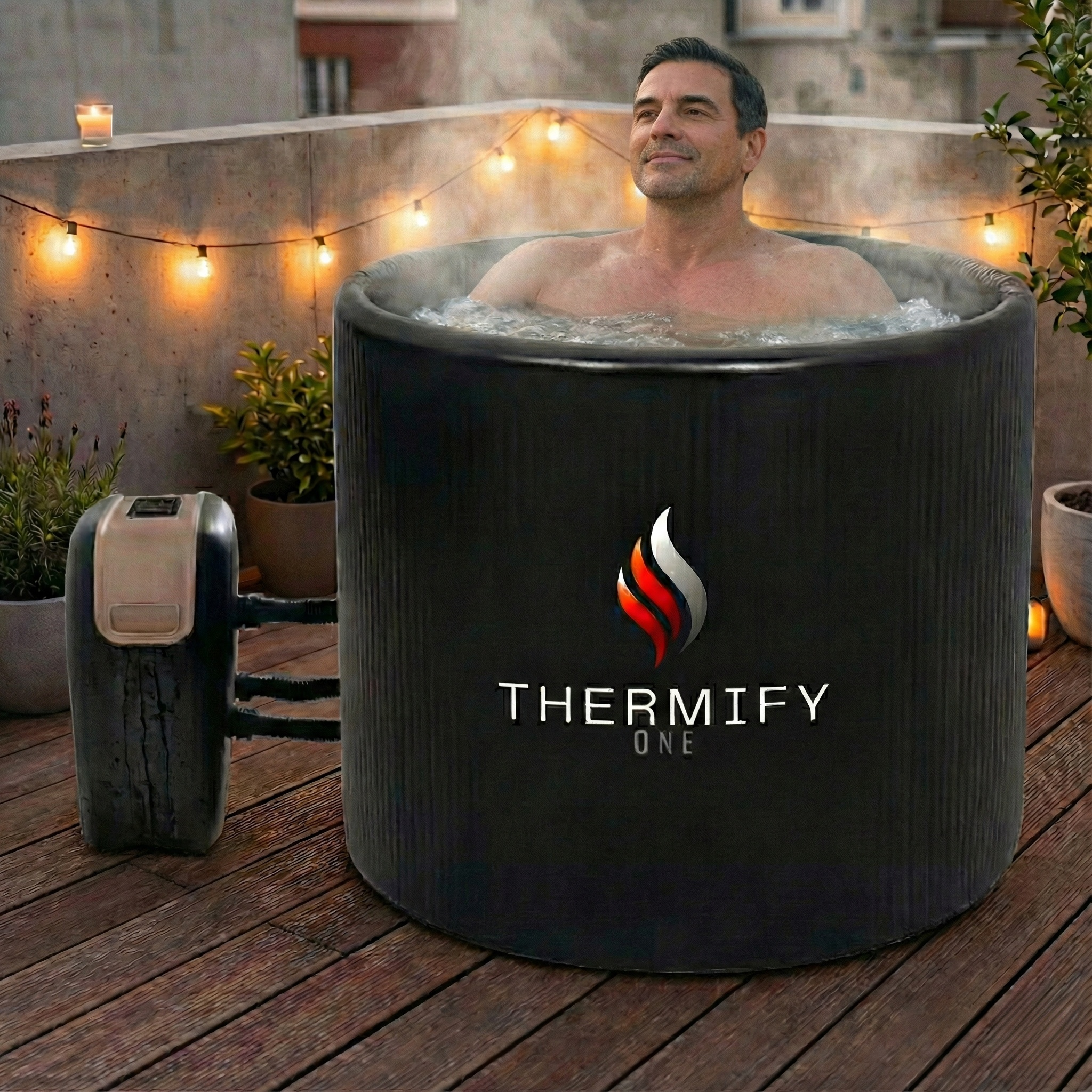 Stop renting time at spas. The Thermify One is a clinical-grade hydrotherapy system (108°F) for your home. Plugs into any outlet. Ready 24/7.